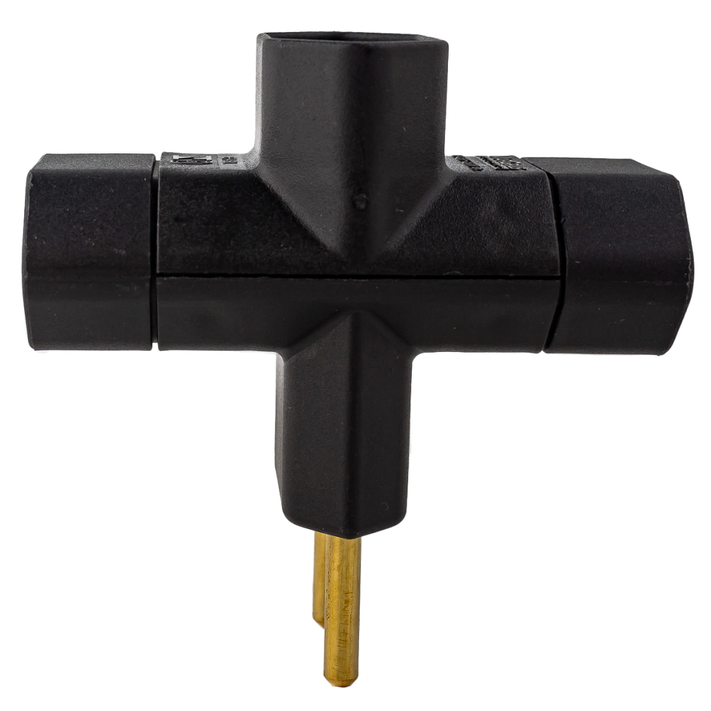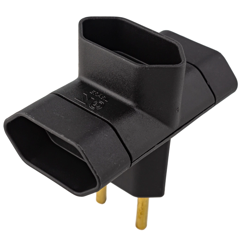 - Pino tipo T para ligação de um ou mais equipamentos na mesma tomada.