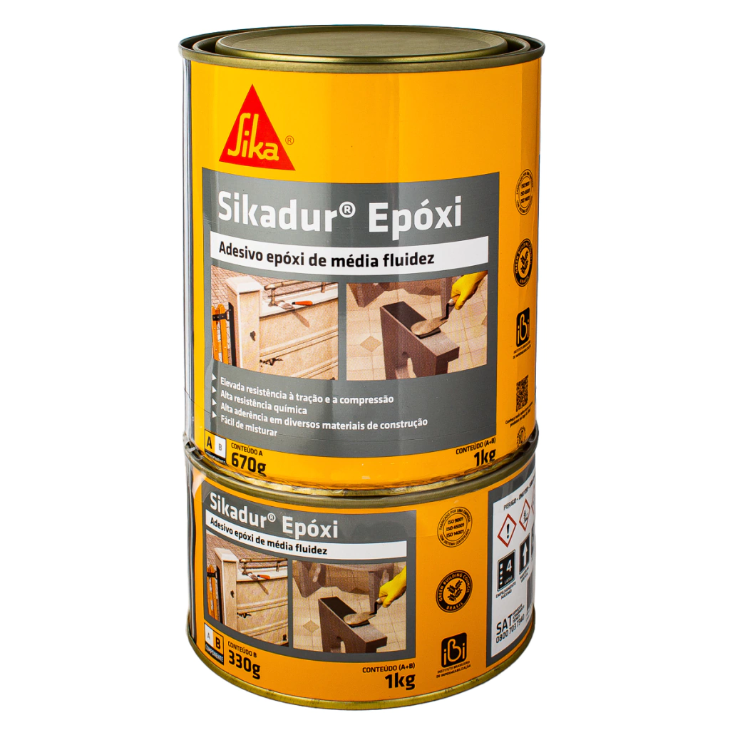 - Sikadur® Epoxi é um adesivo estrutural à base de resina epóxi, média viscosidade (fluido), bi-componente e aderência normal, formulado para colagem de concreto, argamassa, cimento-amianto, madeira, superfícies cerâmicas, mármore, epóxi e aço.