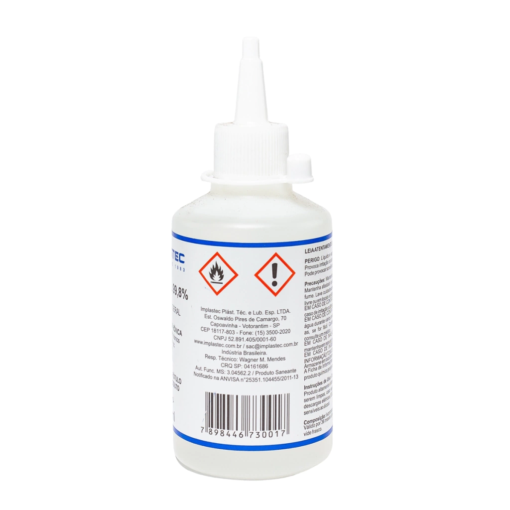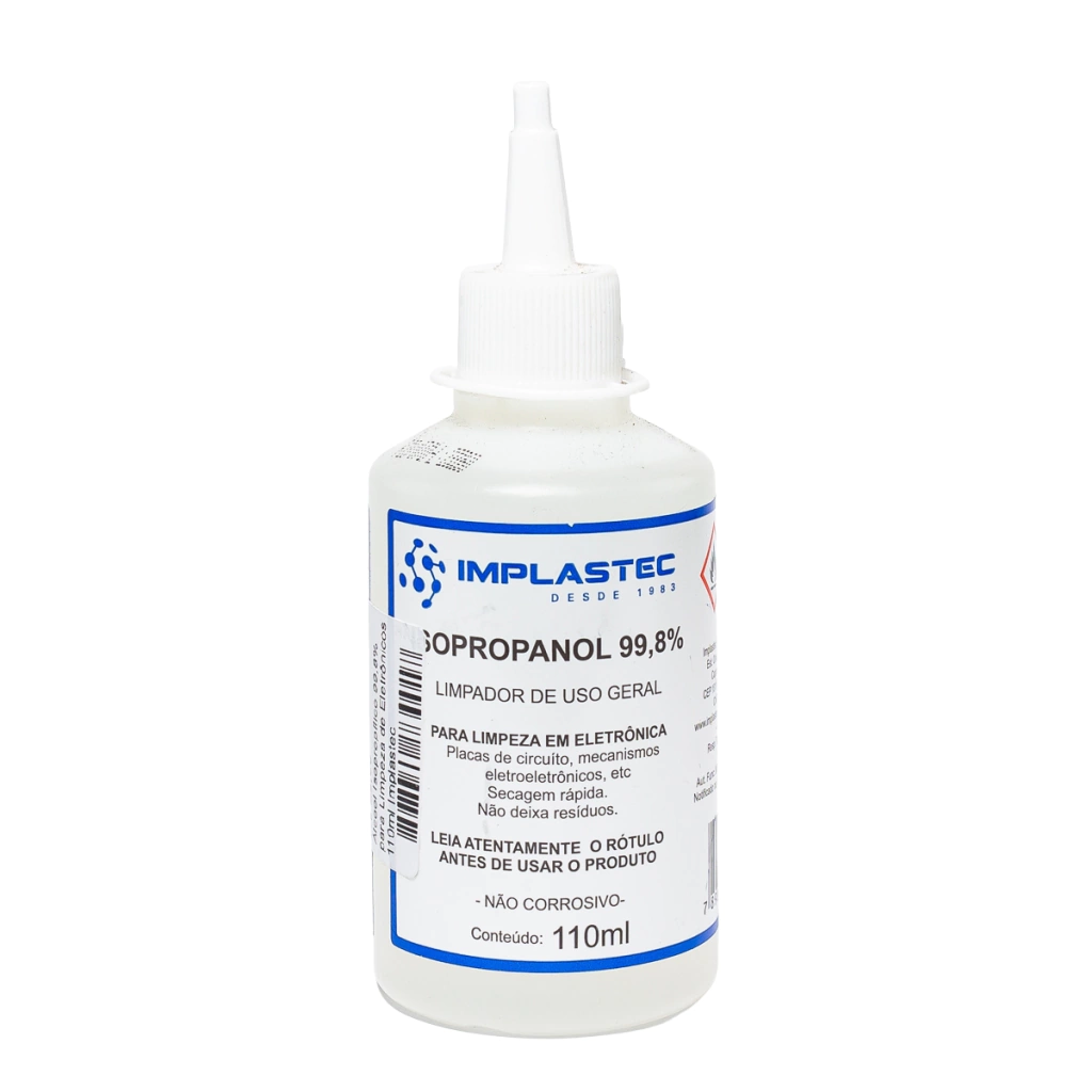 Álcool Isopropílico 99,8% para Limpeza de Eletrônicos 110ml Implastec