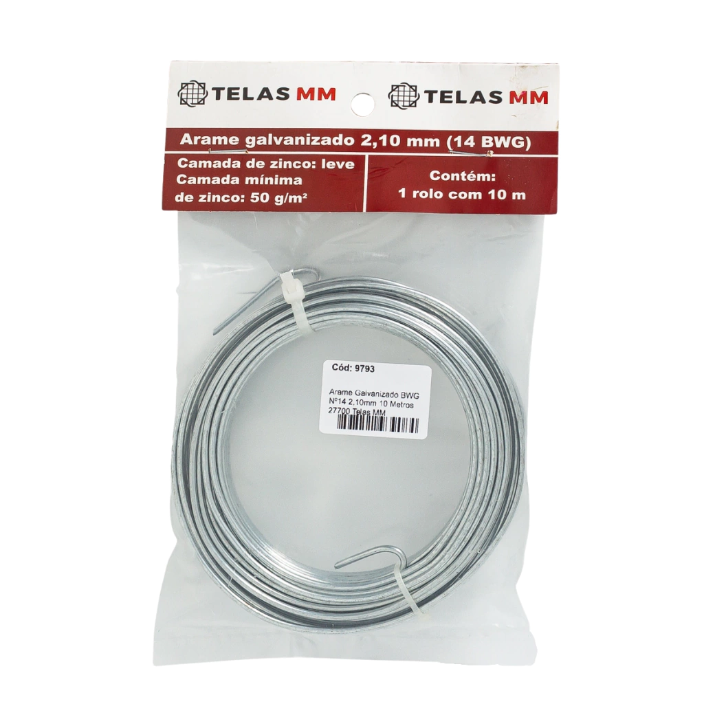 Arame Galvanizado BWG Nº14 2,10mm 10 Metros 27700 Telas MM