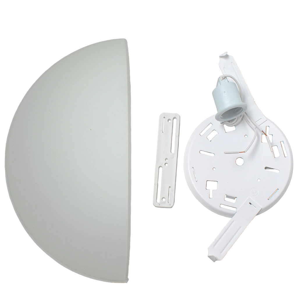 - Arandela meia lua em vidro fosco.
