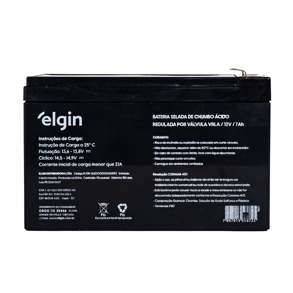 Bateria Selada para No Break e Alarmes 12V 7Ah Elgin