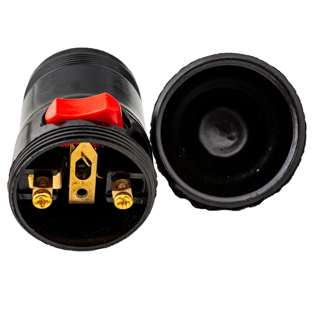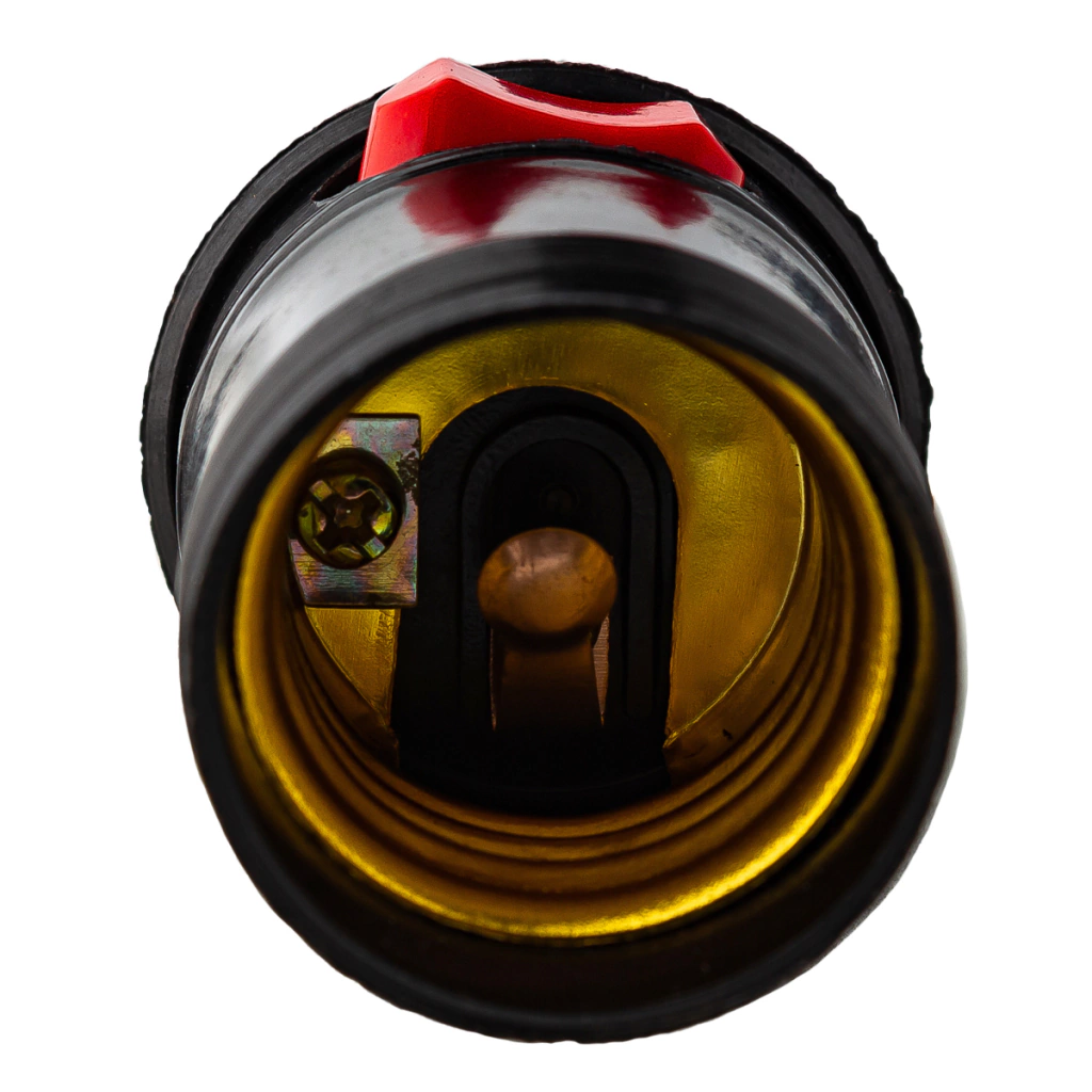 Bocal E-27 em PVC Preto com Chave Liga/Desliga Vermelha G20