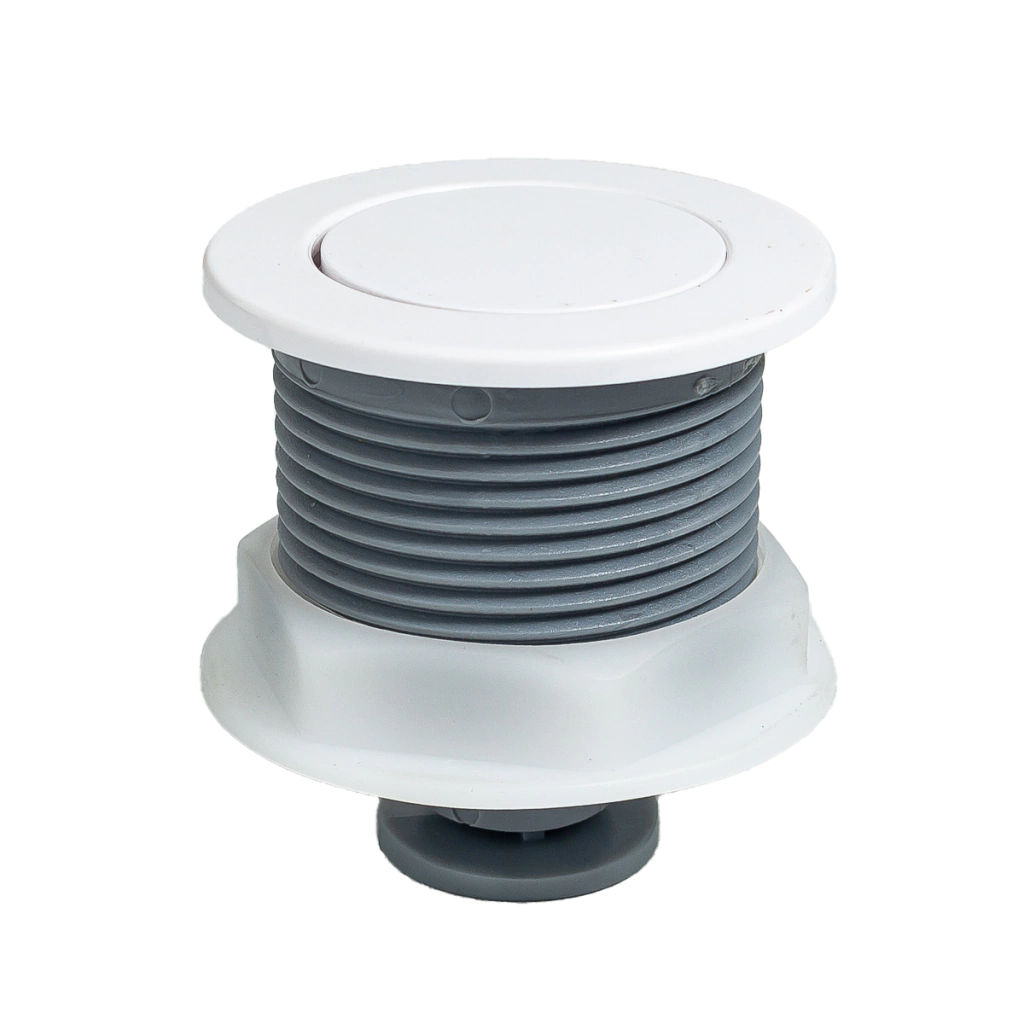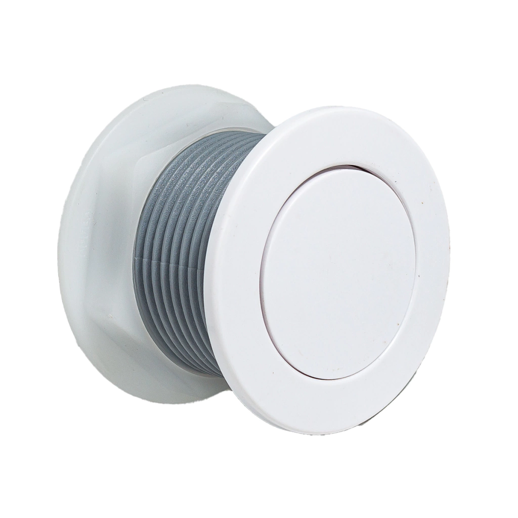 - Botão simples para acionamento superior de mecanismos de saída de água em caixas acopladas.