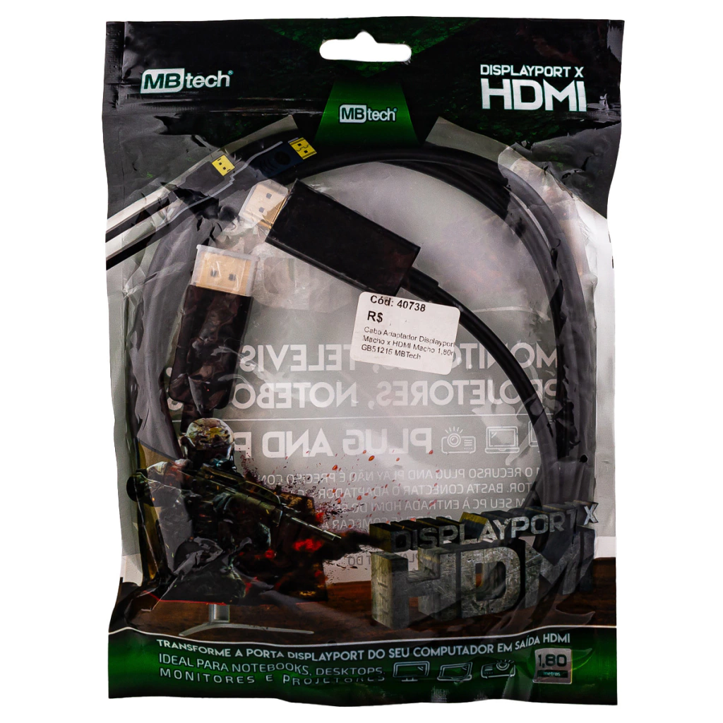 Cabo Adaptador Displayport Macho x HDMI Macho 1,80m GB51215 MBTech