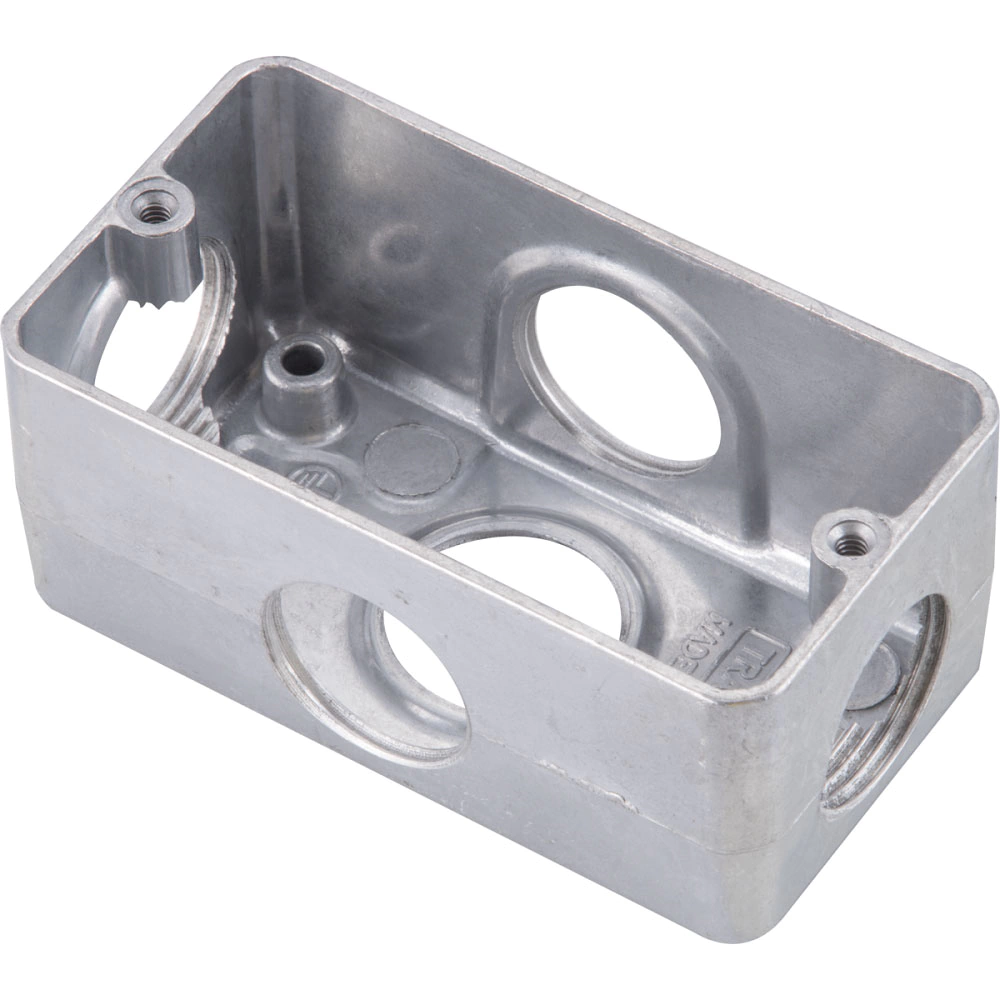 Produzido em alumínio, possui elevada resistência mecânica e a corrosão, sendo ideal para instalações elétricas aparentes - residenciais, comerciais e industriais - proporcionando uma solução, quando não se tem a intenção de quebrar a parede para embutir a fiação. Indicado para projetos que preveem expansão futura, possui saídas para cinco diferentes direções. Se uma das saídas não for utilizada, pode ser tapada para posterior expansão. A aplicação do kit de vedações possibilita, de forma simples e eficiente, obter o índice de proteção IP 54 - ideal para instalações externas. O kit de vedações e tampões de saída, são oferecidos separadamente.
