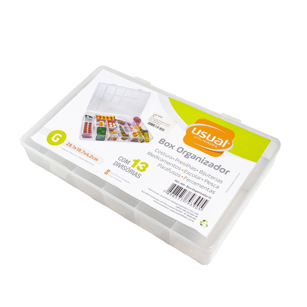 Caixa Organizadora Grande com Divisórias 28,1 x 18,7 x 4,2cm 490 Usual