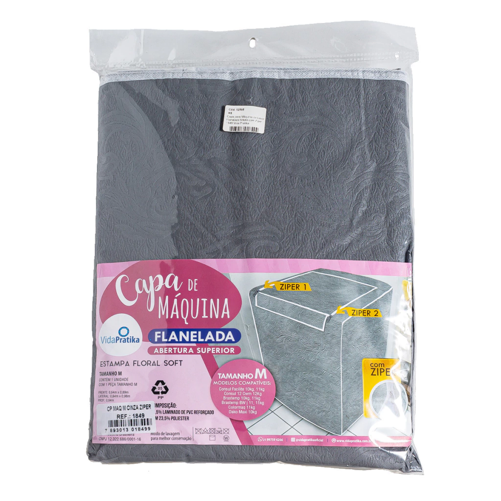 Capa para Máquina de Lavar Flanelada Média com Zíper 1849 Vida Pratika