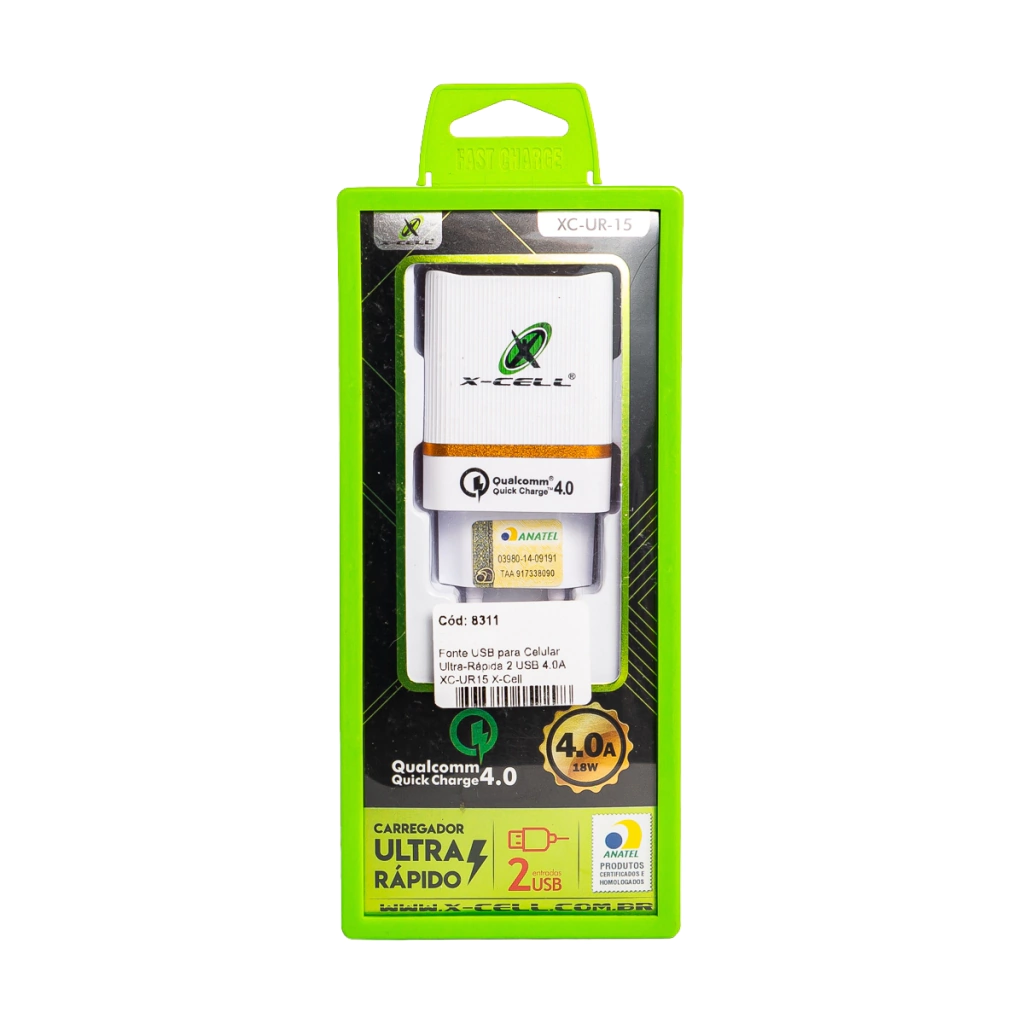 Carregador para Celular Ultra-Rápido 2 USB 4.0A XC-UR15 X-Cell