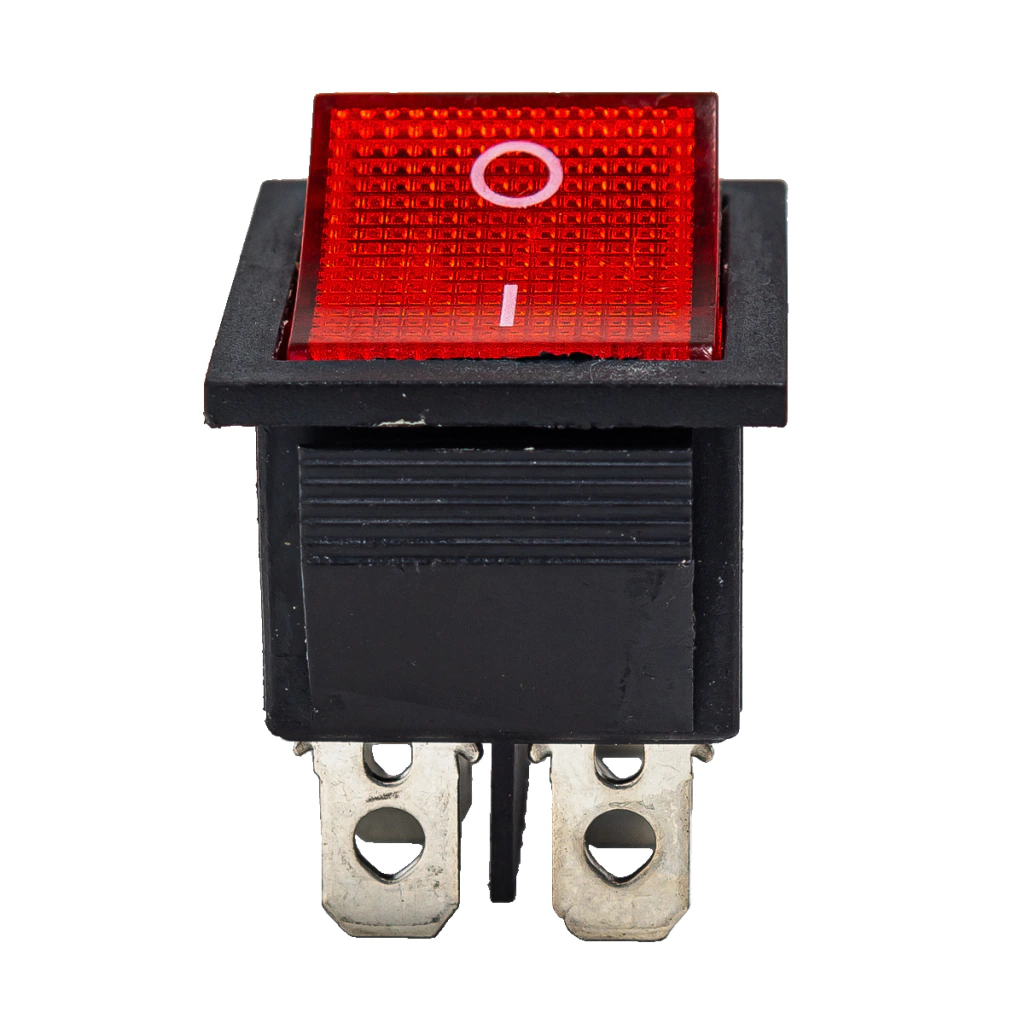 Chave Gangorra Retangular KCD4 6 Pólos e 2 Posições com Botão Luminoso Vermelho 16A/20A 250V