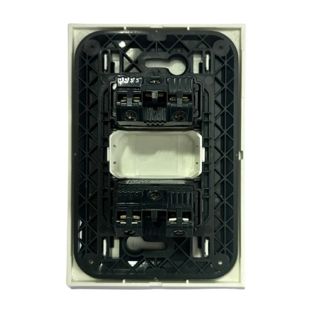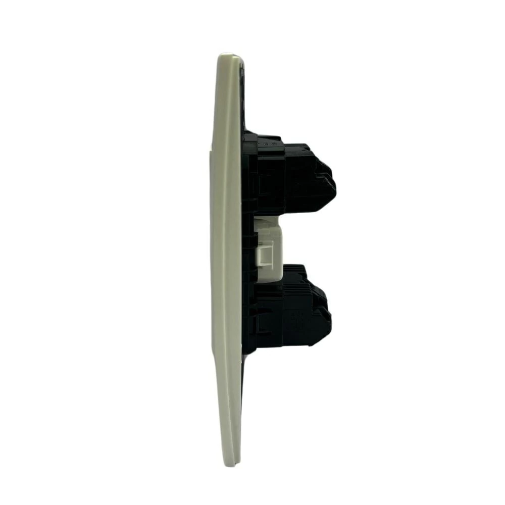 Conjunto de tomada dupla 2P+T 20A da linha Pial Vela, da marca Legrand.