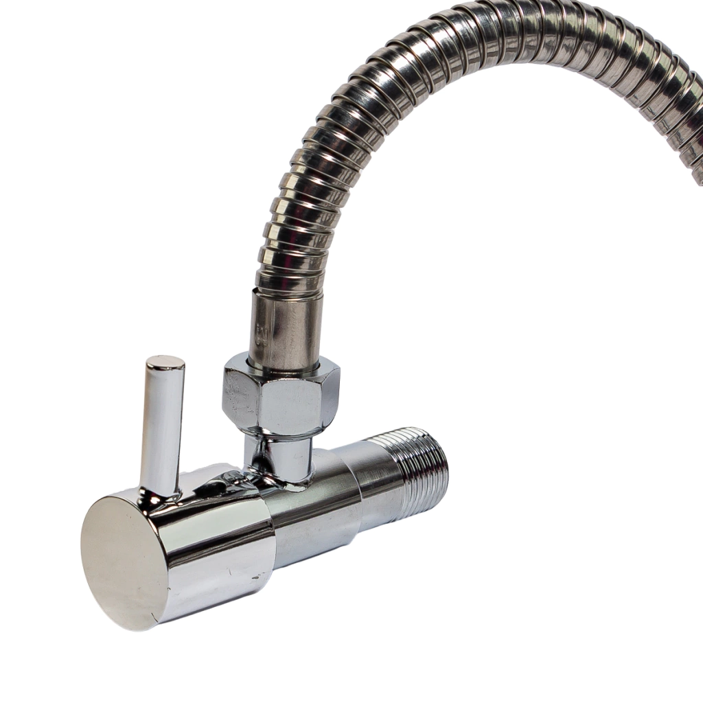 - Registro e mangueira em metal. Gatilho e suporte em PVC cromado.