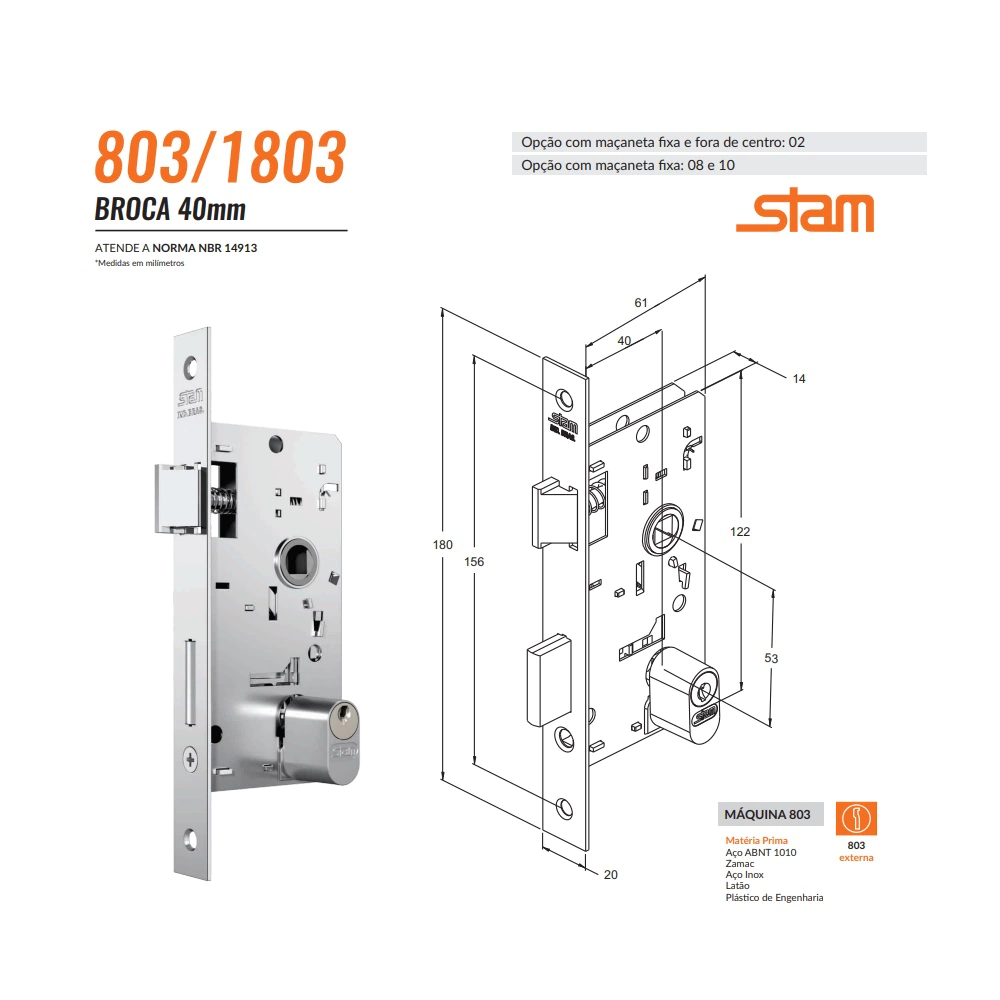 - Matéria Prima: Aço ABNT 1010, Zamac, Aço Inox, Latão e Plástico de Engenharia.