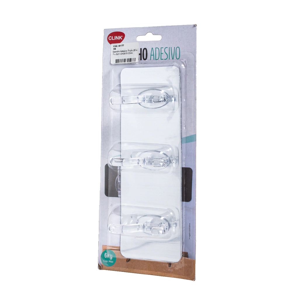 Gancho Adesivo Triplo 20 x 7 x 3cm CK5572 Clink