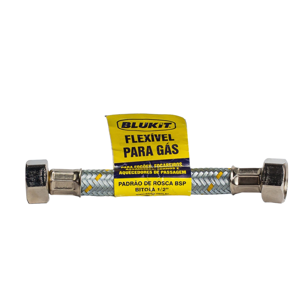 Mangueira para Gás 3/8" com Malha de Inox 1/2" Rosca Fêmea 0,15 Metros Blukit