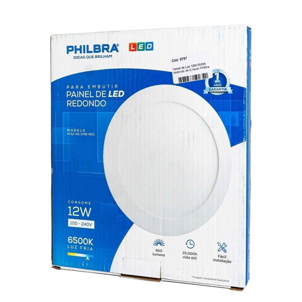 Painel de Led 12W 6500K Redondo de Embutir Philbra