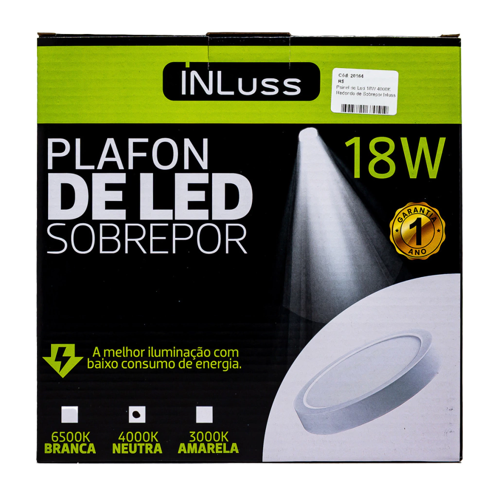 Painel de Led 18W 4000K Redondo de Sobrepor Inluss