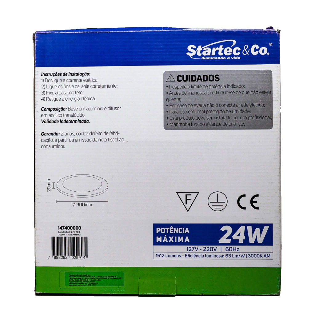 Painel de Led 24W 3000K Redondo de Embutir Startec