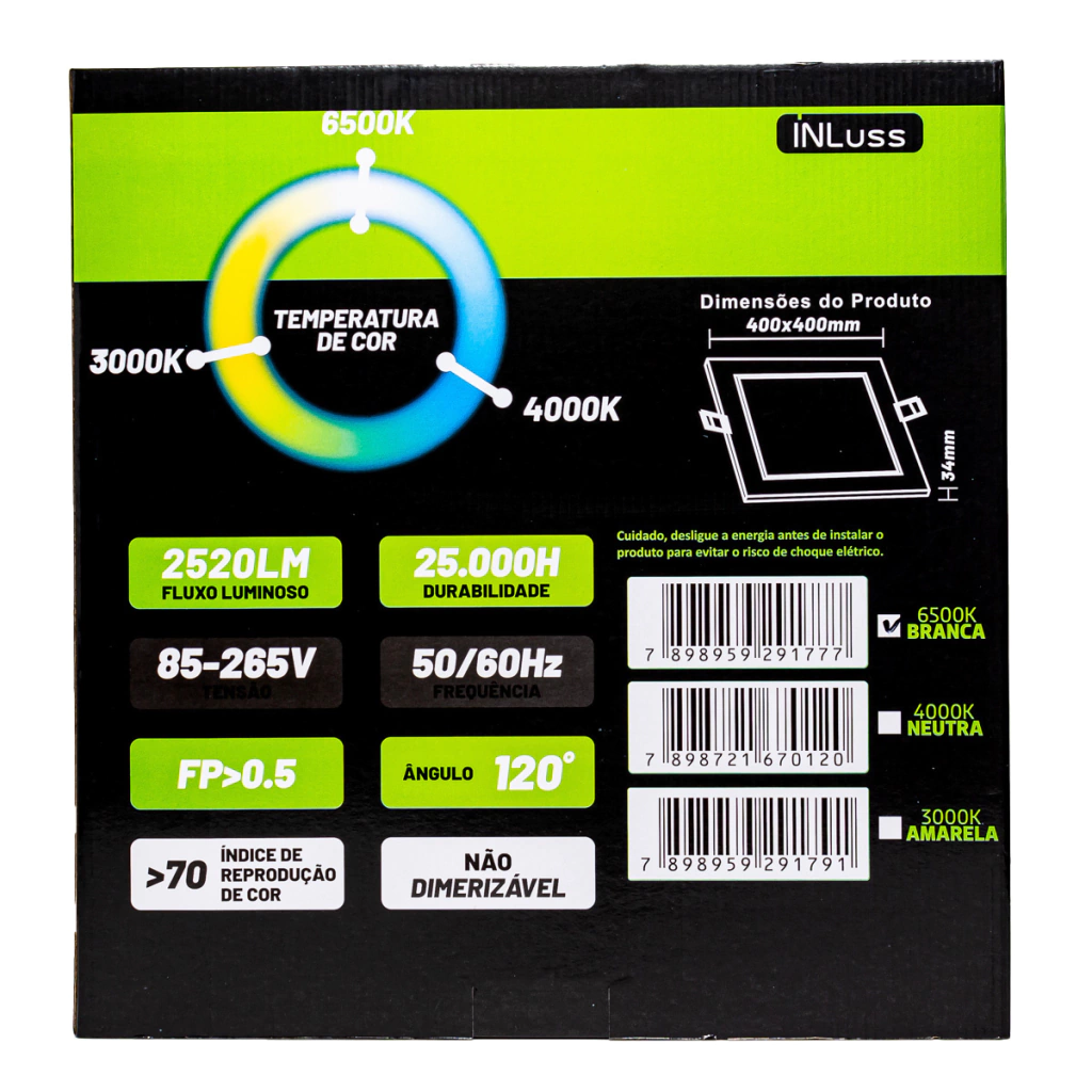 Painel de Led 36W 6500K Quadrado de Embutir Inluss