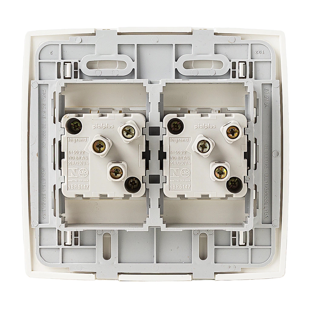 Pialplus Tomada Dupla Antiga 3 Pinos Faca com Placa 4x4 e Suporte