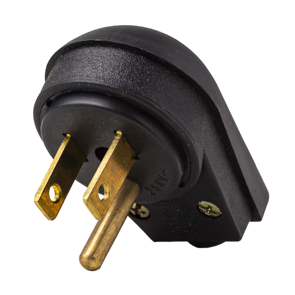- Plugue redondo 2p + T com prensa cabo.