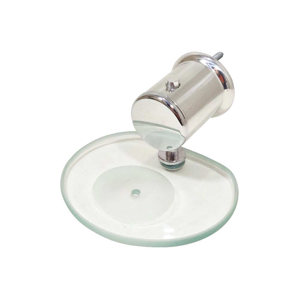 - Saboneteira com base em vidro e centro jateado para que o sabonete não escorregue. Acabamento em metal cromado.