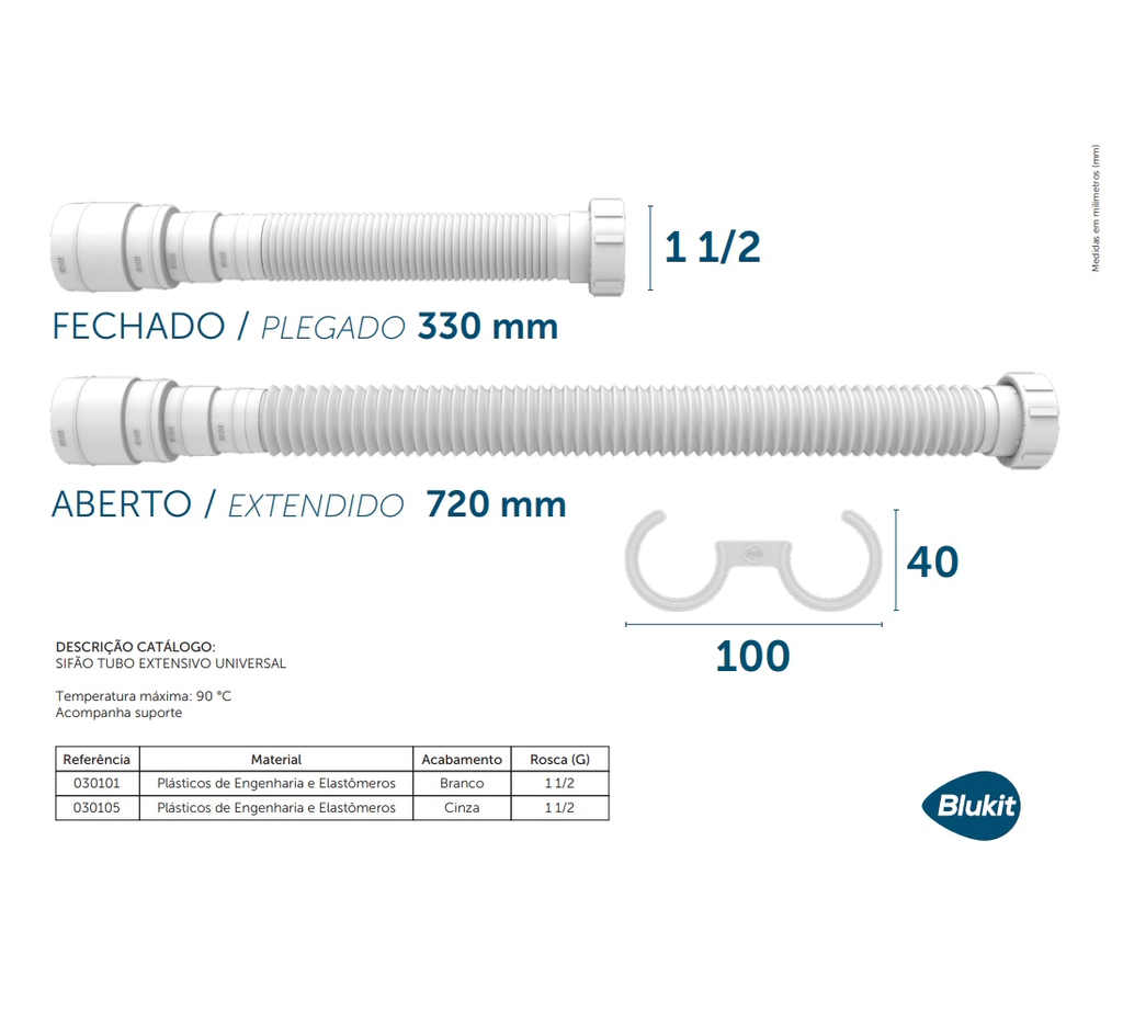 Sifão Tubo Extensível Universal Branco 030101 Blukit
