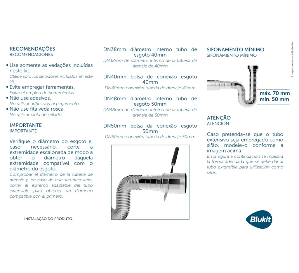 Sifão Tubo Extensível Universal Cromado 031101 Blukit