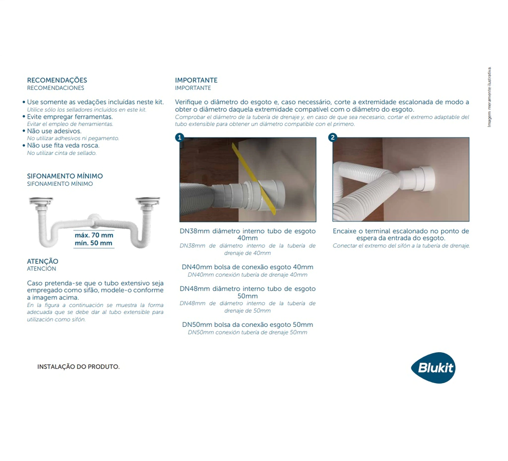 Sifão Tubo Extensível Duplo Universal Branco 030205 Blukit